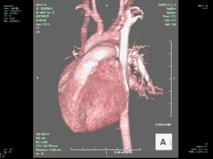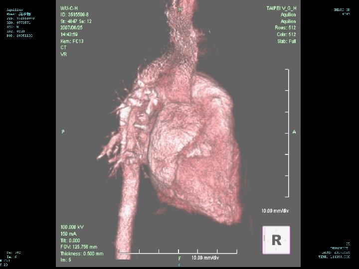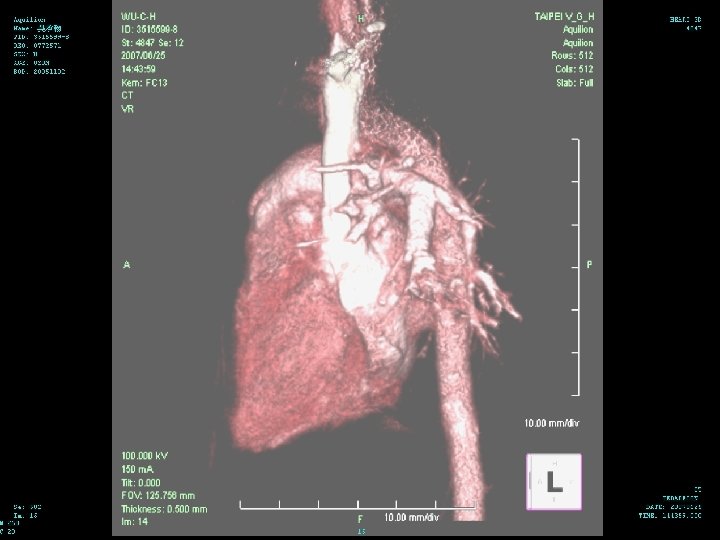 Hospital Course (6/25 -28) 3 D CT of chest performed on 6/25 n There is narrowing of the trachea in the level of aortic arch with narrowest diameter about 0. 25 cm about 1. 2 cm in length n There is dextrocardia with left side aortic arch n There is double SVC with left SVC drainage to coronary sinus n