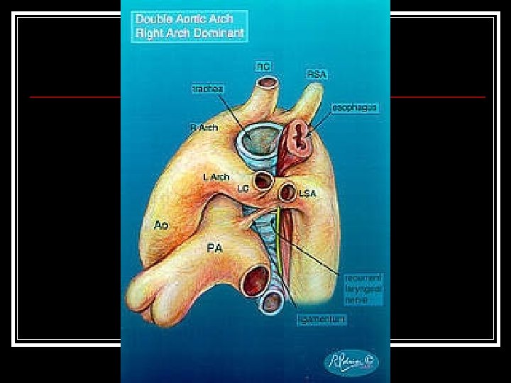 Clinical The double aortic arch is the anomaly that usually produces the most severe airway compression in the youngest patients n some patients with a complete vascular ring have minimal symptoms or remain asymptomatic n