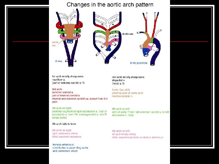 Arch Develop n Early in normal development, both a dorsal and a ventral aortic arch are present. The 2 arches are connected by 6 embryonic branchial arches