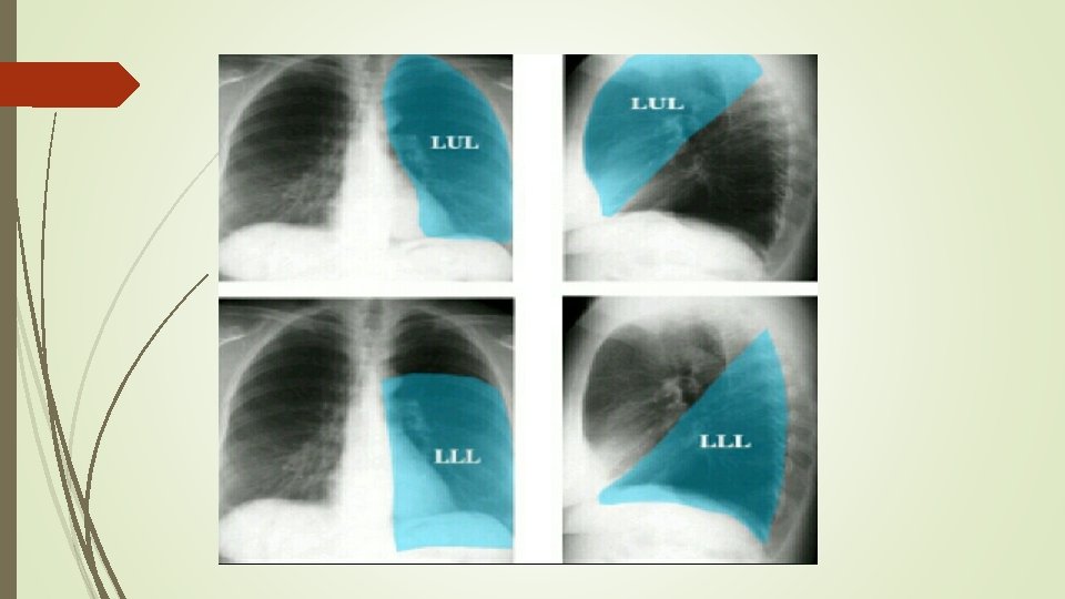 Lt sided mid lobe pulmonary infiltrate lt sided pulmonary opacity with fading lateral borders silhouetting the LT heart border, with mild pleural effusion ( blunting of the LT costophrenic angles)