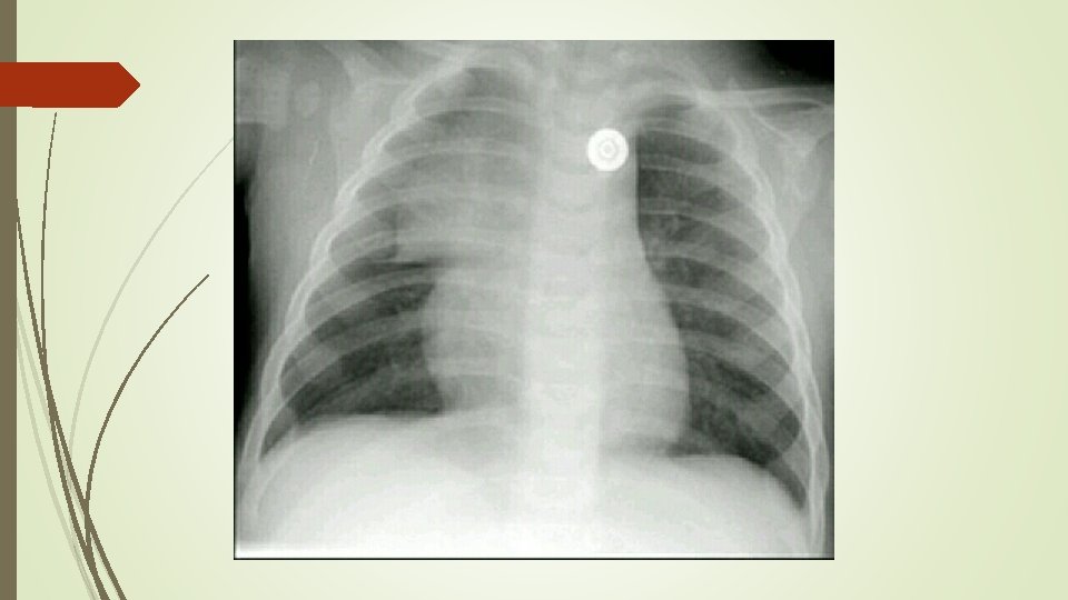 The normal chest in the young 1. well specialized normal heart size , which looks objectively enlarged , among a relatively small lung. Normal anterior superior mediastinum (thymic shadow ) Transverse rib orientation. With equal intercostal spaces , on both sides Clear both lung fields with faint vascularity gas under the LT hemidiaphragm Liver under the Rt hemidiaphragm Central trachea and both sternal end of the clavicles, to avoid error misinterpretation Clear lung fields