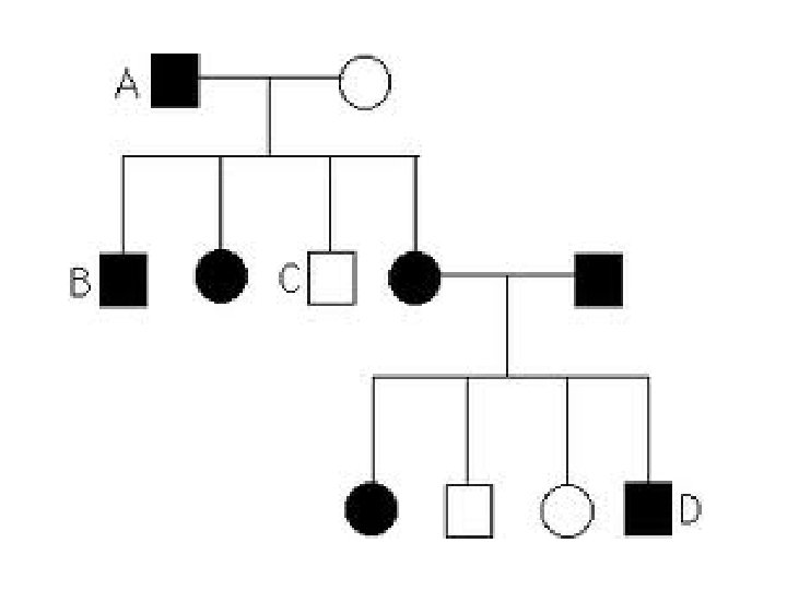 Pedigrees What is a pedigree Pedigree Copyright 2008 Slides: 13 Download presentation Pedigrees! What is a pedigree? • Pedigree - Copyright © 2008 Pearson Education Inc. , publishing as Pearson Benjamin Cummings Fig. 14 -15 a Basic Pedigree Symbols Male Affected male Female Affected female Mating Offspring, in birth order (first-born on left) Fig. 14 -15 b 1 st generation (grandparents) 2 nd generation (parents, aunts, and uncles) Ww ww ww Ww Ww Ww ww 3 rd generation (two sisters) WW or Ww Widow’s peak ww No widow’s peak (a) Is a widow’s peak a dominant or recessive trait? The Behavior of Dominant Alleles Copyright © 2008 Pearson Education Inc. , publishing as Pearson Benjamin Cummings Fig. 14 -15 c 1 st generation (grandparents) Ff 2 nd generation (parents, aunts, and uncles) FF or Ff ff ff Ff Ff Ff ff ff FF or Ff 3 rd generation (two sisters) Attached earlobe Free earlobe (b) Is an attached earlobe a dominant or recessive trait? The Behavior of Recessive Alleles Copyright © 2008 Pearson Education Inc. , publishing as Pearson Benjamin Cummings General Strategies… • Determine if the trait is dominant or recesive • Identify the homozygous recessives! • Work backwards, remembering one allele must always come from each parent! Copyright © 2008 Pearson Education Inc. , publishing as Pearson Benjamin Cummings I. III. IV. General Strategies… • Determine if the trait is dominant or recessive • Identify the homozygous recessives! • Work backwards, remembering one allele must always come from each parent! Copyright © 2008 Pearson Education Inc. , publishing as Pearson Benjamin Cummings Combining Pedigrees + Punnett Squares Individual IV-1 marries a woman who is not albino, but who has a child from a previous marriage with albinism. What is the probability their first child will be albino? Copyright © 2008 Pearson Education Inc. , publishing as Pearson Benjamin Cummings