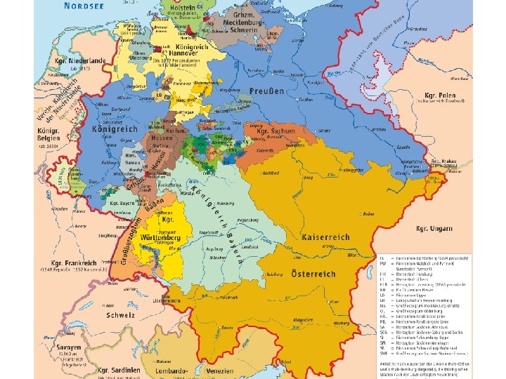 • Prusko-rakouská válka (1866), byla válka vedená v roce 1866 mezi Pruským královstvím, Italským královstvím a jejich spojenci na straně jedné a Rakouským císařstvím a jeho spojenci na straně druhé o převahu v Německém spolku • Vítězství Pruska nad Rakouským císařstvím vedlo ke vzniku Rakouska-Uherska a pruské hegemonii v Severoněmeckém spolku, což byl krok vedoucí k sjednocení Německa a jeho maloněmecké řešení s vyloučením Rakouska • Důsledkem války získala Itálie Benátky odstoupené Rakouskem