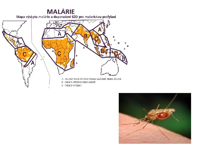 SOUČASNÉ SVĚTOVÉ EPIDEMIE A NEMOCI – MALÁRIE • Největším současným strašákem však není AIDS, Ebola, Zika apod. • Na MALÁRII (parazitická infekce přenášená z člověka na člověka kousnutím infikované samičky komára rodu Anopheles) každý rok zemře okolo 600 tisíc lidí a dalších 200 milionů se jí nakazí • K devadesáti procentům úmrtí na malárii dochází v subsaharské Africe a téměř 4/5 obětí tvoří děti mladší 5 let • Ačkoli od roku 2000 úmrtnost poklesla o 25 %, je nemoc světově stále hlavní příčinou úmrtí dětí mladších 5 let