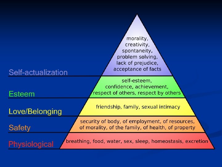 Humanistická psychologie Carl R. Rogers (1902 - 1987) (zakladatel hum. ps. ) směr se soustředí především na terapii než na popis lidské psychiky téma sebepřijetí, seberealizace, sebeaktualizace tři nezbytné vlastnosti psychoterapeuta: autenticita (kongruence), akceptace, empatie Abrabam Maslow (1908 - 1970) spoluzakladatel humanistické psych. autor známé pyramidy potřeb