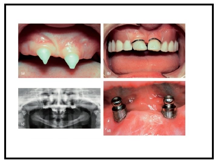 Diş eksikliklerinde tedavi seçenekleri • Asit-etch ile kompozit restorasyonlar • Parsiyel protezler; konvansiyonel ya da overdenture protezler • Gömük diş sebepli eksikliklerde; dişin cerrahi/ortodontik sürdürülmesi • Eksik dişlerin sebebiyle oluşan diastemaların ortodontik düzeltilmesi • İndirekt kompozit veneerler, kuron-köprü restorasyonları • Osseointegre implant uygulamaları(genellikle büyüme-gelişim bittikten sonra)