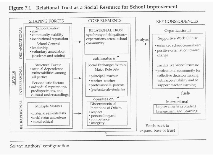 Trust as Prima Facie Value in Education Policy Argumentation z In concluding their findings generated from a largescale study of the Chicago School Reform, Anthony Bryk and Barbara Schneider assert that trust in schools is the core resource for school improvement. (2002) z Typology of social trust y Organic trust in family institution y Contractual trust in market institution y Relational trust in school institution z Relational trust in school institution