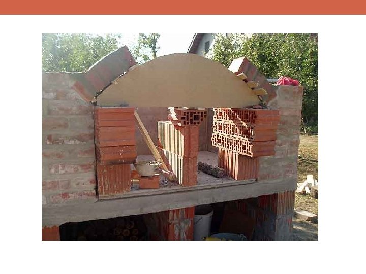 IZRADA PEČENJARE 2. Ložište: - Na betonsku ploču koju ste napravili, postaviti sloj (pijeska, kvarcnog pijeska) debljine 2 od 5 cm kao izolaciju između obloge i betona. - Obloga može biti od šamotne cigle ili obične cigle koja se stavlja na sloj pijeska te nam čini ložište gdje ložimo vatru.