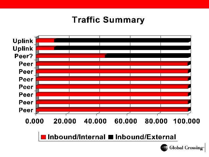 Peer Policy Policing with Netflow Measurement DEFAULTING PEER REPORT: Rec'd Peer Bytes percentage of total router interface destined for peer Bytes for interface br 2. HUB 1. gblx. net_so-2/1/3. 0 0. 011 M 0. 006 <-Peer A br 2. HUB 1. gblx. net_so-2/1/0. 026 M 0. 008 <-Peer B br 2. HUB 1. gblx. net_so-3/1/0. 087 M 0. 008 <-Peer C br 2. HUB 1. gblx. net_so-2/1/2. 0 0. 145 M 0. 011 <-Peer D br 2. HUB 1. gblx. net_at-2/2/0. 0 0. 167 M 0. 024 <-Peer E br 2. HUB 1. gblx. net_so-1/2/3. 0 0. 339 M 0. 017 <-Peer F br 2. HUB 1. gblx. net_so-3/1/2. 0 2. 464 M 0. 246 <-Peer G br 2. HUB 1. gblx. net_so-0/0/0. 0 3319. 615 M 56. 722 <-uplink br 2. HUB 1. gblx. net_so-1/0/0. 0 3381. 523 M 61. 515 <-uplink