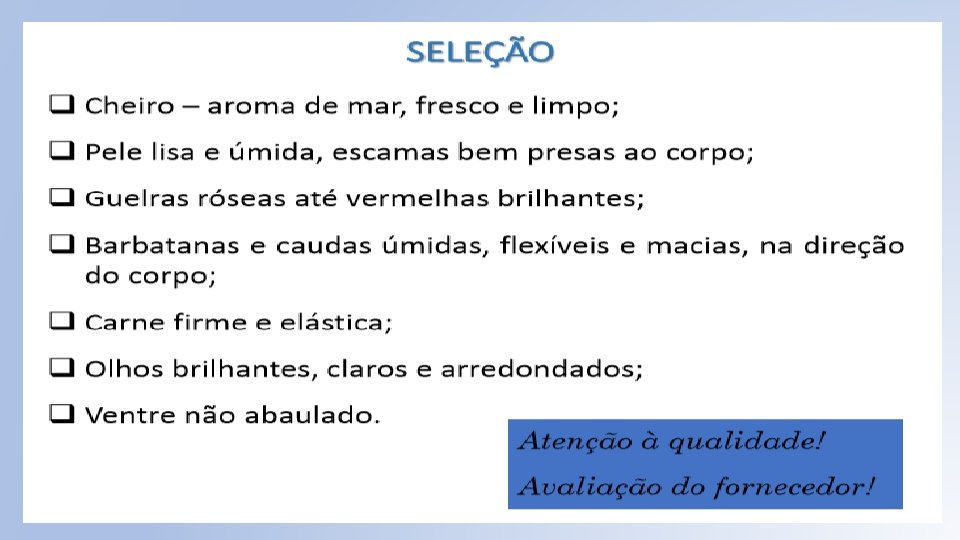 PEIXES – ASPECTOS DE QUALIDADE NA CADEIA PRODUTIVA Prof MSc. Lauro Bernardino Coelho Jr.