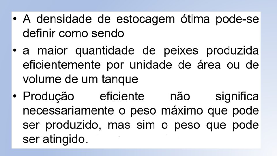 Exemplos • Pacú – 50 – 75 peixes/ m 3