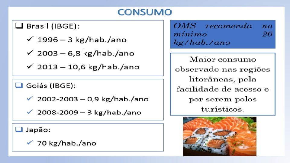 Brasil • Grande potencial de cultivo em tanques-rede; • São mais 5, 5 milhões de hectares de água doce em reservatórios naturais e artificiais que poderão ser aproveitados na produção de organismos aquáticos; • Se 1% dessa área fosse utilizada para produção intensiva de peixes (150 kg/m 2/ano com dois ciclos anuais) teríamos como resultado uma produção total de 82, 5 milhões de toneladas; • Esse valor colocaria o Brasil como segundo maior produtor aquícola. • Potencial