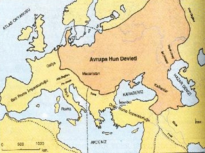AVRUPA HUN DEVLTİ • Kurucusu Balamir Han’dır. Anadolu’ya ilk Türk akınları bu dönemde olmuştur. Atilla döneminde Bizans vergiye bağlanmıştır.
