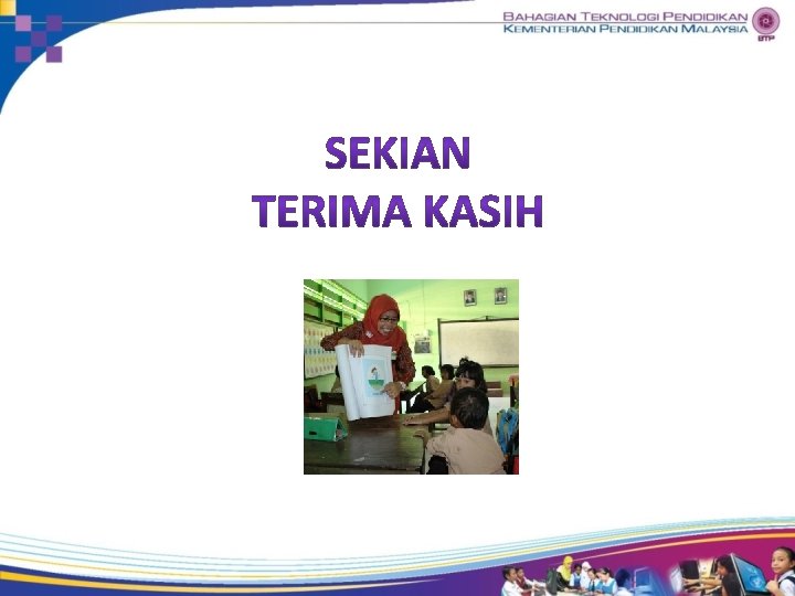 DAPATAN KAJIAN Pada Tahun 2015, Bahagian Teknologi pendidikan telah melaksanakan kajian pelaksanaan Program NILAM: • 83. 2 peratus guru menyatakan bahawa Program NILAM membantu mengurangkan jumlah murid dalam Program LINUS di sekolah; • 91. 0 peratus guru menyatakan bahawa Program NILAM membantu meningkatkan prestasi pencapaian Bahasa Melayu (BM); • 87. 6 peratus guru menyatakan bahawa Program NILAM membantu meningkatkan prestasi pencapaian Bahasa Inggeris (BI); dan • 88. 7 peratus guru menyatakan bahawa Program NILAM membantu meningkatkan prestasi murid dalam peperiksaan. • 84. 4 peratus murid menyatakan bahawa Program NILAM membantu mereka meningkatkan prestasi akademik. Sebanyak 6, 900 guru (Guru Besar, Pengetua, Guru Perpustakaan dan Media, Guru Mata pelajaran) dan 11, 545 murid (sekolah rendah dan menengah) telah menyertai kajian yang dilaksanakan secara dalam talian