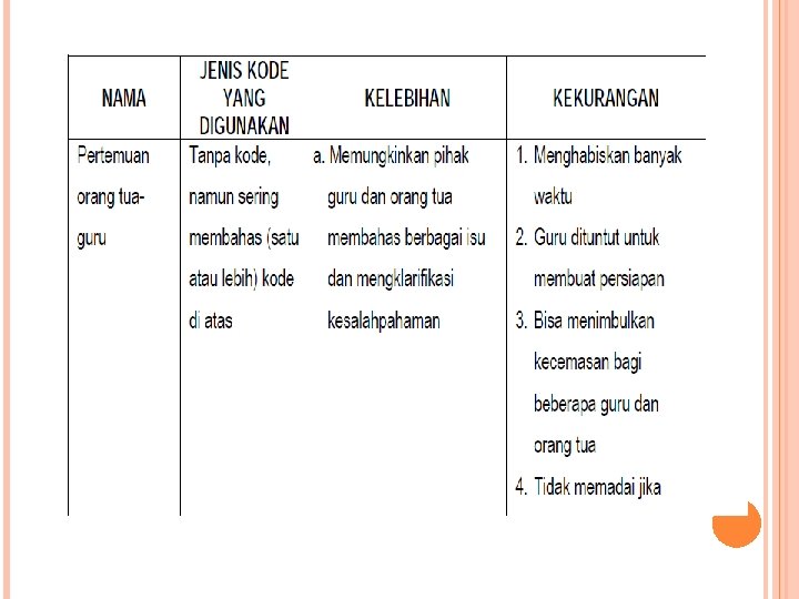 Sayangnya kartu laporan yang telah lama dipakai banyak mendapat kritik, salah satunya adalah sulitnya membuat laporan dan kecenderungan komunikasi antara orang tua dan guru yang hanya satu arah, sehingga membuat banyak pihak berpikir tentang cara lain mengkomunikasikan hasil asesmen dan evaluasi terhadap peserta didik. b. Konferensi Guru-Orang Tua Sebagaimana report card konferensi orang tuaguru juga telah lama dijadikan sarana untuk mengkomunikasikan hasil asesmen oleh pihak sekolah kepada para orang tua peserta didik.