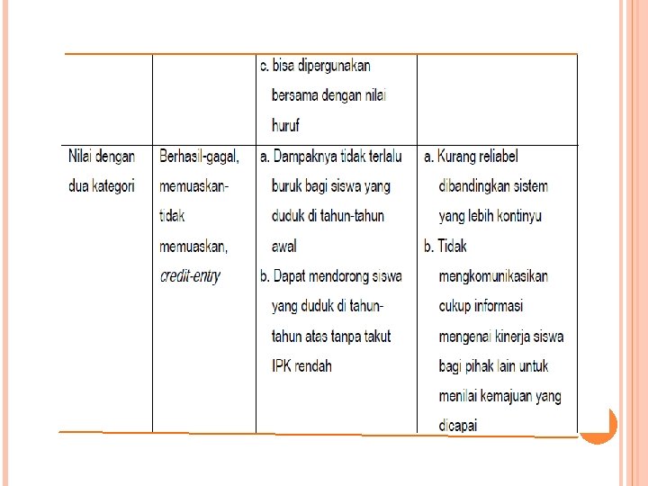 2. banyak pihak yang meyakini bahwa menginterpretasikan angka cukup mudah. 3. angka dapat merepresentasikan keseluruhan. 4. nilai yang ditulis dengan angka lebih bersifat kontinyu dibandingkan dengan nilai yang dituliskan dengan menggunakan huruf. 5. nilai angka bisa dipergunakan bersama dengan nilai huruf. meringkas kinerja dan secara