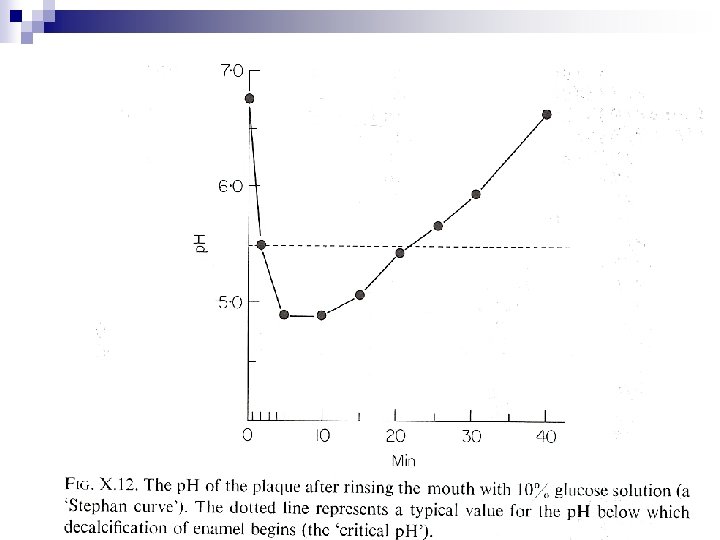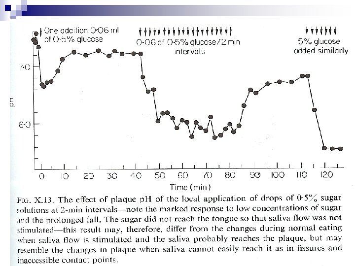 Factors involved in the rise of p. H: 1. 2. 3. Outward diffusion of lactic acid produced from glycolysis of glucose Conversion of lactic acid into less ionized acetic and propionic acids The p. H rise factor in saliva (sialin) which is a basic peptide containing Arg. It accelerate glucose uptake by salivary organisms, increase acid production & the formation of CO 2 & base. The effect is obvious at low sugar conc. At high sugar conc. (>. 5%) the effect is masked by increased acid production