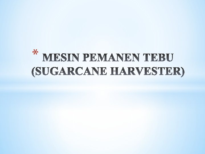 * Pemanenan tebu secara mekanis dapat dilakukan dengan dua cara, yaitu: (1) Holestalk harvester : memotong tebu pada pangkal batang dekat permukaan tanah, kemudian dibawa ke belakang dan disusun di atas guludan. Dengan demikian, tebu hasil panen masih berupa lonjoran batang tebu (utuh) yang diletakkan di atas permukaan tanah (2) Chopper harvester : harvester memotong tebu berupa potongan-potongan berukuran pendek. Tebu yang sudah dipotong pada pangkal batangnya akan dipotong lagi menjadi potongan-potongan lebih pendek yang disebut billet dengan ukuran 20 - 40 cm.