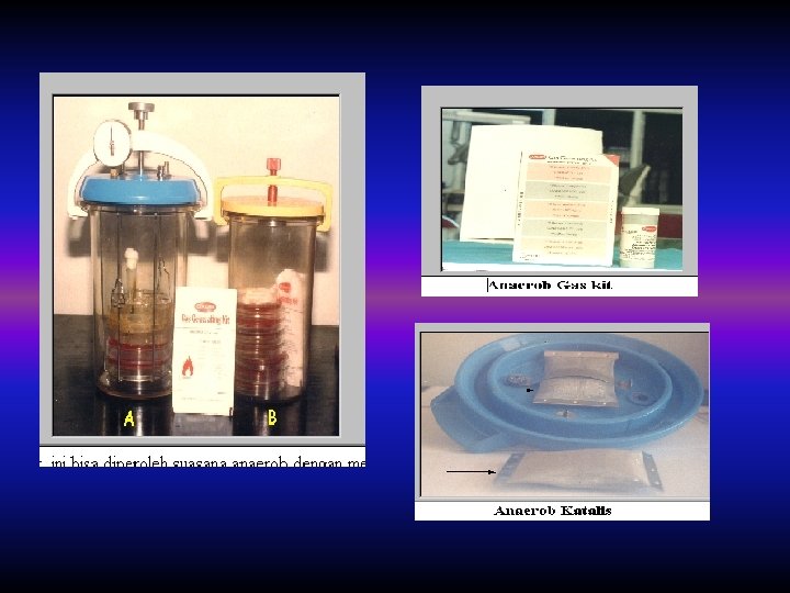 n Hasil pengecatan Gram: basil : B. fragilis, Prevotella Gram kokus: Veilonella Basil: Lactobacillus, Eubacterium Gram + Kokus: Peptostreptococcus n Cara Inkubasi: 1. Sist. Sungkup anaerob + gas pak 2. Sist. Sungkup evacuation / replacement 3. Anaerob glove box.