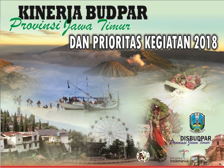 PEMERINTAH PROVINSI JAWA TIMUR DINAS KEBUDAYAAN DAN VISI PARIWISATA Visi pembangunan kebudayaan dan pariwisata Jawa Timur yang ingin diwujudkan pada periode 2014 -2019 adalah “Terwujudnya masyarakat yang sejahtera dan berkarakter dengan mengembangkan kepariwisataan dan kebudayaan”. MISI 1. Mengembangkan kepariwisataan yang berdaya saing, berkelanjutan serta promosi pariwisata yang berkualitas. 2. Meningkatkan apresiasi dan pemahaman masyarakat terhadap nilai dan keragaman budaya, serta pelestarian warisan budaya.