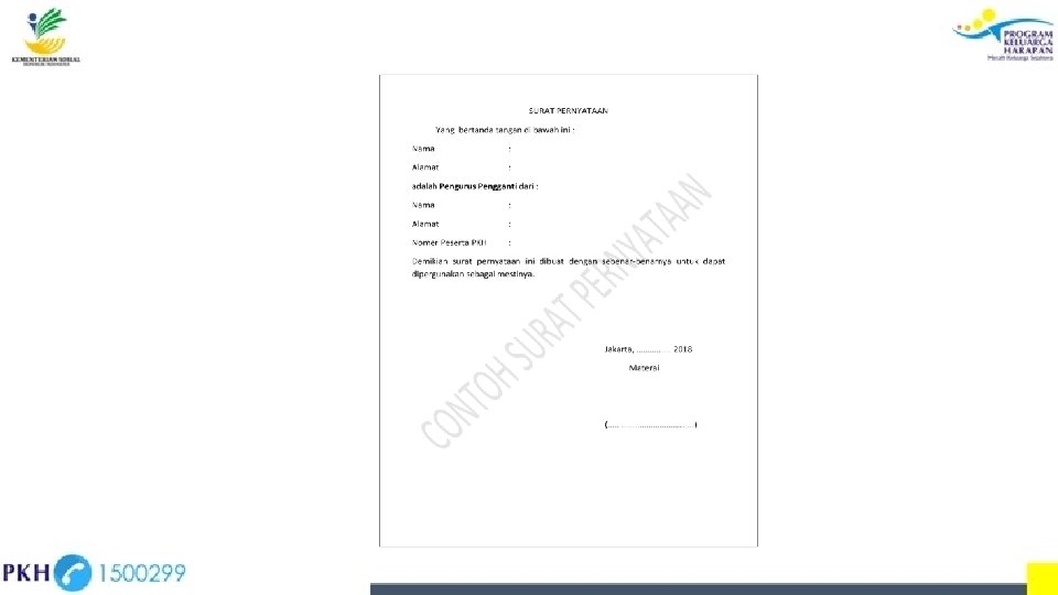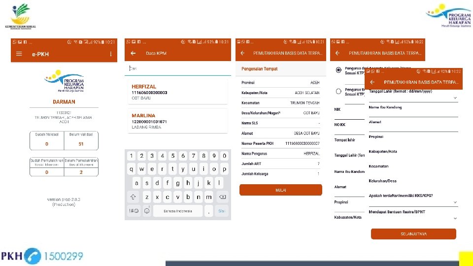 PEMUTAKHIRAN DATA Pemutakhiran data dilaksanakan setiap ada perubahan sebagian atau seluruh data anggota Keluarga Penerima Manfaat PKH. Pemutakhiran Anggota Keluarga • Perubahan tempat tinggal • Kelahiran anggota keluarga • Penarikan anak-anak dari program (kematian, keluar/pindah sekolah, dan sebagainya) • Masuknya anak-anak baru ke sekolah • Ibu hamil • Perbaikan nama atau dokumen-dokumen • Perubahan nama ibu/perempuan penerima PKH (menikah/cerai, meninggal, pindah/bekerja di luar domisili) • Perubahan fasilitas kesehatan yang diakses Pemutakhiran Program Komplementer NIK, KIS, KIP, BPNT, Rastra, Listrik, LPG