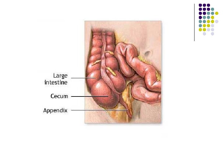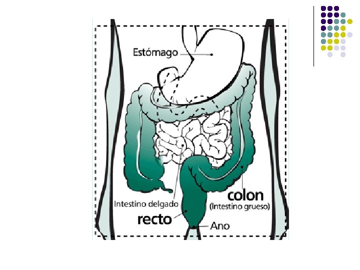 Kolon (Usus Besar) l l Tempat sisa pencernaan Terjadi penyerapan air Sisa pencernaan tersebut mengalami proses penguraian oleh mikroba usus (pembusukan) Hasilnya adalah feses (tinja)