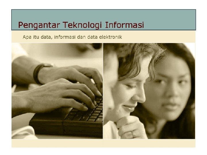 Data Elektronik = ? Data dalam bentuk/format elektronik yaitu data yang diolah secara elektronik �� menggunakan peralatan elektronik �� komputer. Pengertian diolah mencakup pemasukan, pemrosesan dan hasil keluaran data. Pengolahan Data Elektronik = ? Usaha/cara untuk mengolah data dengan menggunakan perangkat komputer v. Data Analog v. Data Digital