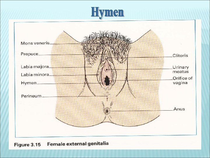 ORGAN REPRODUKSI LUAR Organ reproduksi luar wanita = vulva Terdiri dari = 1. Bibir luar ( Labium Mayor ) dan Bibir dalam ( Labium Minor ) 2. Klitoris ( Kelentit ) : tonjolan di bagian depan vagina (seperti penis pada laki-laki) 3. Perineum : Jaringan kulit yang memisahkan vagina dari rectum dan anus. 4. Lubang vagina terletak di sebelah bawah. 5. Kelenjar Bartholin : bermuara dikanan-kiri vagina berfungsi untuk mensekresikan lendir yang diperlukan