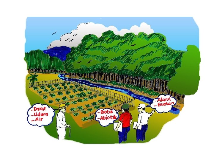 FUNGSI LINGKUNGAN HIDUP l l Penopang sistem kehidupan (life support system) Pemasok kebutuhan manusia akan sumber daya alam: Pulih (renewable): hutan, air n Tak pulih (non renewable): mineral, migas n l l Kemampuan asimilasi limbah/cemaran Estetika dan kenyamanan lingkungan