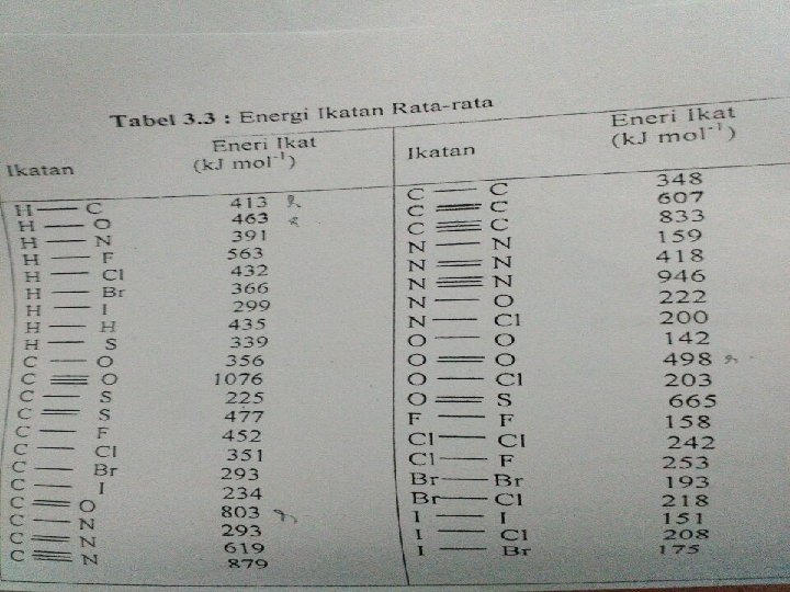 ENERGI IKATAN &ENERGI IKATAN RATA � Energi ikatan -> energi yg diperlukan utk memutuskan 1 ikatan utk menghasilkan pecahan-pecahan yg netral. � Energi ikatan rata-rata -> dapat digunakan utk menghitung panas pembentukan dg ketepaatan yang dapat diandaikan. ∆H = Ʃ ∆HD (ikatan putus) - Ʃ ∆HD (ikatan terbentuk)