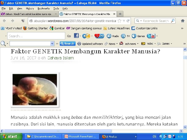 I’TIBAR KEHIDUPAN � Nabi Muhammad saw diperintahkan oleh Tuhan untuk mengisahkan cerita dalam al-Qur’an tentang para rasul, seperti nabi Musa, Harun, Ismail, Nuh bahwa mereka menyungkur bersujud dan menangis bila ditunjukkan ayat-ayat Allah. Selanjutnya Allah memperingatkan: “Maka datanglah sesudah mereka, generasi yang jelek, menyiakan shalat dan memperturutkan hawa nafsunya, mereka itulah yang jelas akan sesat. Kecuali orang yang bertaubat, beriman, dan beramal salih. Maka mereka itu akan masuk surga dan tidak mungkin dianiaya (dirugikan) sedikitpun”. (Q. S. Maryam 59 -60) � Nabi bersabda: Ketahuilah bahwa dalam diri setiap kalian ada ”mudghoh” (segumpal daging), jika mudghoh itu bersih maka semua yang ditampilkan oleh orang tersebut juga bersih (baik), dan jika mudghoh itu rusak maka yang ditampilkan oleh orang tersebut juga rusak (tidak baik). Ketahuilah bahwa yang disebut mudghoh itu adalah al-qolb (hati). (Al-Hadist)