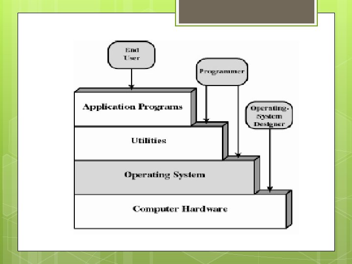Control Program • Mengawasi pelaksanaan di dalam proses (Task Management) • Mengontrol penempatan data di dalam sistem termasuk pengaturannya di dalam media penyimpanan (Data Management) • Mengatur jadwal pekerjaan processing (Job Management) Processing Program • Mempermudah persiapan aplikasi program • Menentukan pekerjaan yang akan dieksekusi