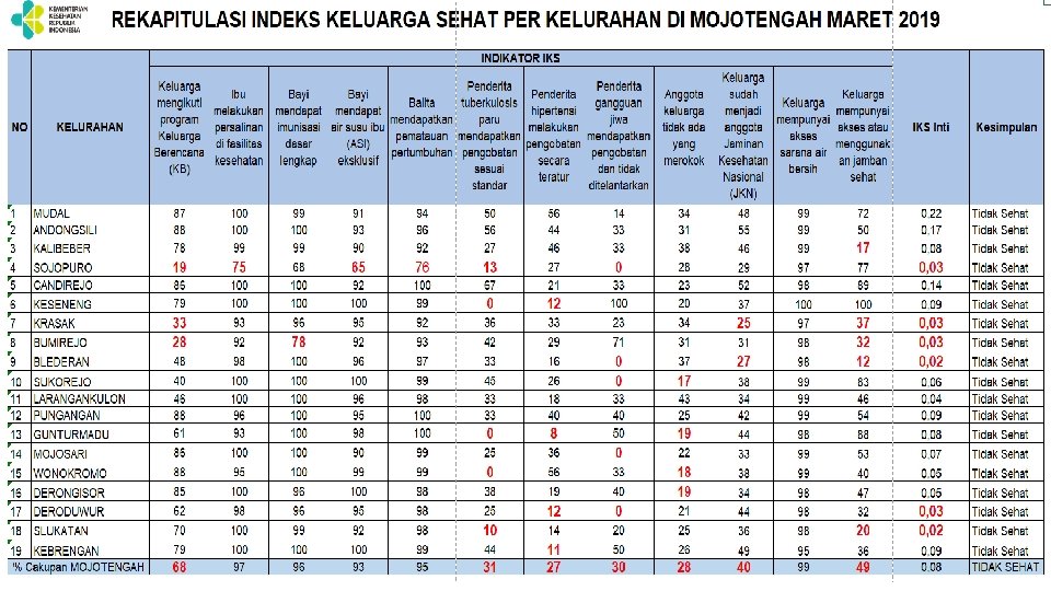 ANALISA LANJUT • Dengan menggunakan raw data hasil kunjungan keluarga • Mengetahui karakteristik individu dengan capaian indicator • Menghubungkan antar indikator