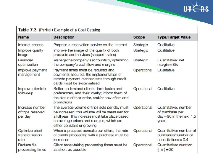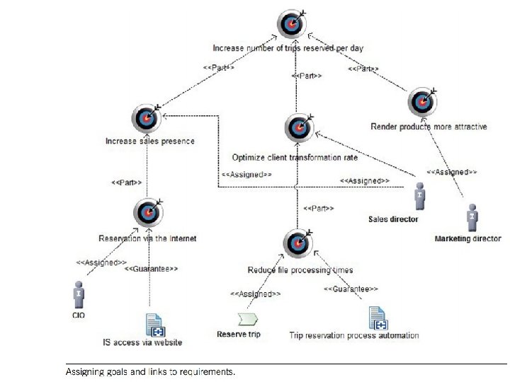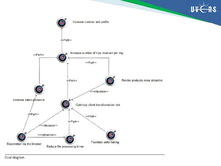Goal diagram Nama Diagram goal Ahli pakar Pimpinan, Direktur Desainer/perancang Analis Bisnis (business analyst) Penerima Stakeholder siklus arsitektur, pimpinan, arsitek bisnis, arsitek aplikasi, CIO Tujuan Menentukan sasaran/tujuan yang akan memandu perubahan yang akan dilakukan perusahaan dan Sinya Mengkuantifikasi tujuan dan mengalokasikannya Menyediakan dasar rasional untuk penugasan tingkat prioritas sasaran/tujuan Informasi awal bermanfaat Goal yang teridentifikasi sebelumnya, dorongan perusahaan, analisis SWOT, riset pemasaran