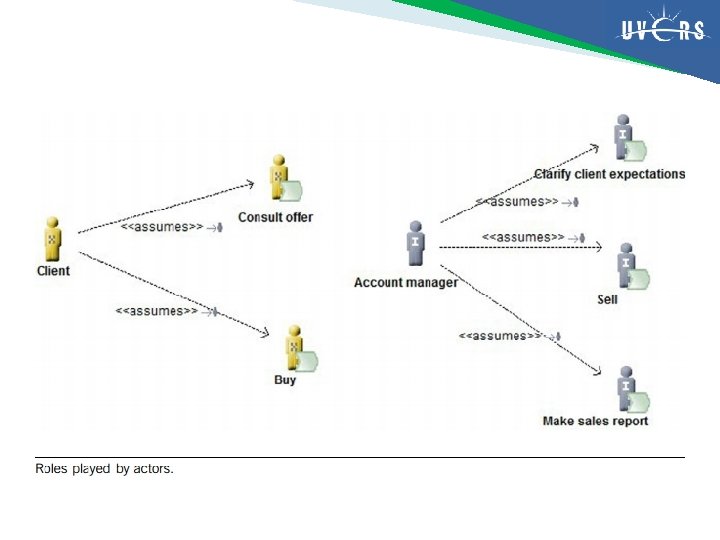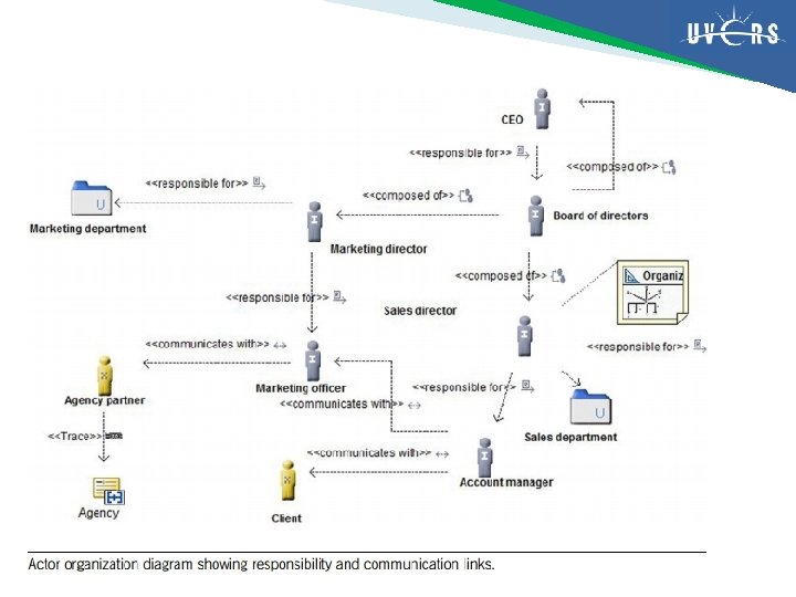 Actor organization diagram Nama Diagram actor organization Ahli pakar Pimpinan, Manajer Desainer/perancang Analis Bisnis (business analyst) atau pakar/ahli bisnis Penerima Arsitek bisnis, Pimpinan, manajer, Analis proses bisnis Tujuan Mendefinisikan jenis-jenis posisi dalam perusahaan serta hak dan tanggung jawabnya Mengidentifikasi partisipan diluar perusahaan Informasi awal bermanfaat Pengetahuan perusahaan, bagan organisasi
