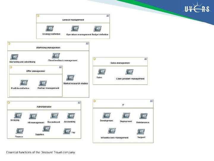 Functional decomposition diagram Nama Diagram functional decomposition Ahli pakar Pimpinan, Manajer Desainer/perancang Analis Bisnis (business analyst), pakar/ahli bisnis Penerima Analis Bisnis, Analis proses bisnis Tujuan Menentukan fungsi penting perusahaan Menentukan bagaimana fungsi tersebut dilaksanakan dengan baik Informasi awal bermanfaat Organisasi perusahaan, sasaran yang diperbaiki