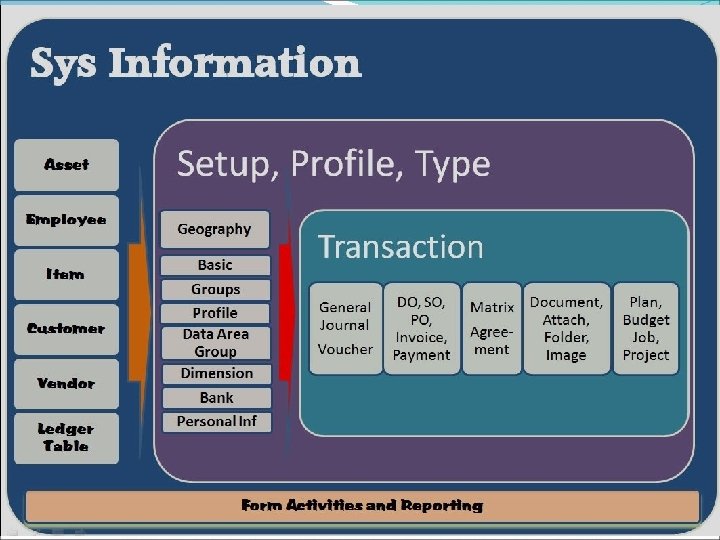 SIKLUS HIDUP SISTEM Proses Pengembangan sistem berasal dari system life cycle/siklus hidup sistem terjadi begitu saja Siklus hidup System Life cycle adalah pemfaktoran umur hidup sebuah sistem informasi ke dalam dua tahap (1) pengembangan sistem dan (2) Operasi dan perawatan sistem – pertama anda membangunnya , kemudian anda menggunakan dan merawatnya. Pada akhirnya, anda kembali ke pengembangan ulang sebuh sistem baru System Development Methodology / metodologi pengembangan sistem , mengeksekusi tahap pengembangan sistem siklus hidup sistem.