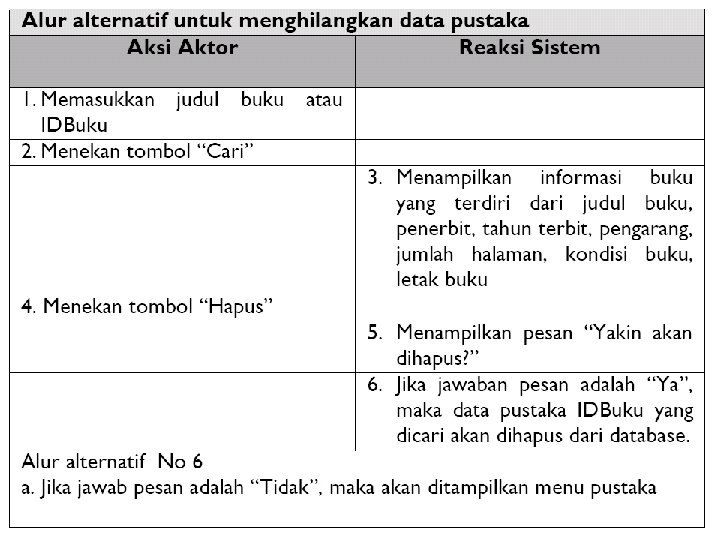 Jawab: Pemecahan studi kasus tahap pertama yaitu melakukan pencarian aktor. mulailah bertanya dengan SIAPA, PERAN dan NILAI apa yang akan didapatkan.