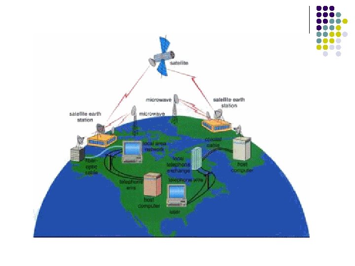 Macam Network 3. Wide Area Network (WAN) l l Jaringan komputer yang mencakup area yang besar misalnya jaringan komputer antar wilayah, kota bahkan antar Negara. WAN digunakans ebagai penghubung jaringan local yang satu dengan ajringan local yang lain, sehingga pengguna atau komputer di lokasi yang satu dapat berkomunikasi dengan pengguna dan komputer dilokasi lain.
