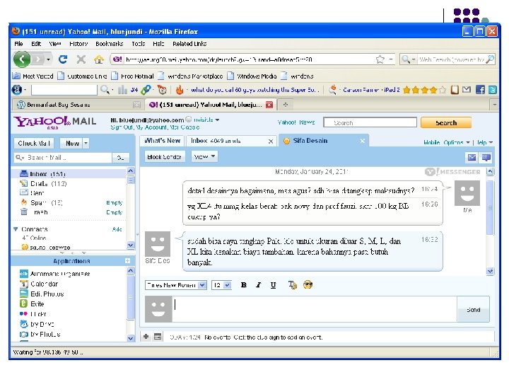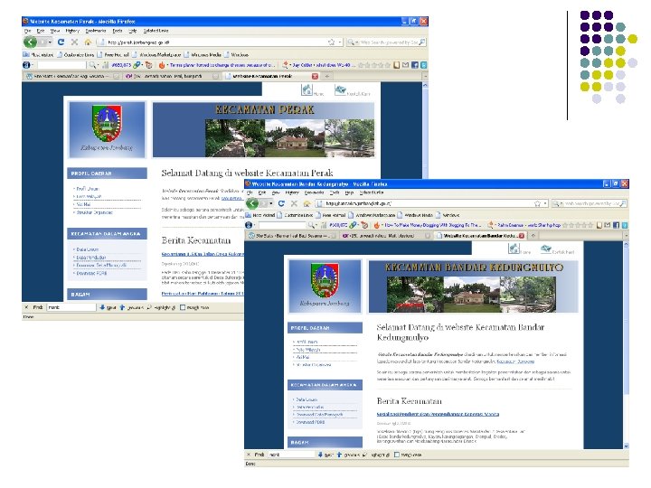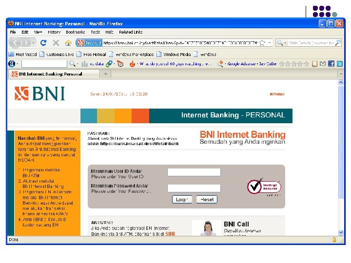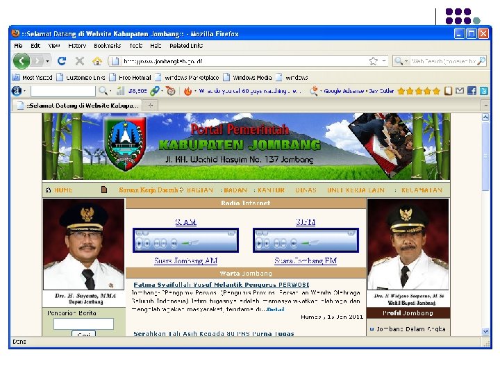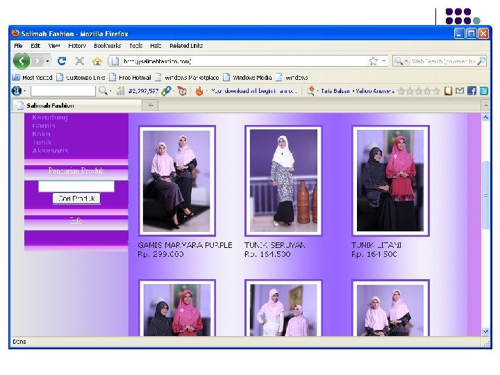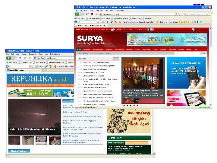 Manfaat Internet l Memperoleh/ mencari informasi apapun. l l l Berkomunikasi langsung/ tidak langsung. l l Berita Artikel, dll Surat elektronik (email) Percakapan (chatting) Video conference, dll Jual beli barang/ jasa (e-commerce).