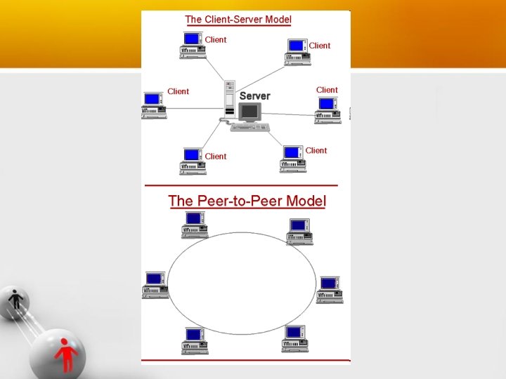 Peer to peer • Adalah suatu model di mana tiap PC dapat memakai resource pada PC lain atau memberikan resource-nya untuk dipakai PC lain.
