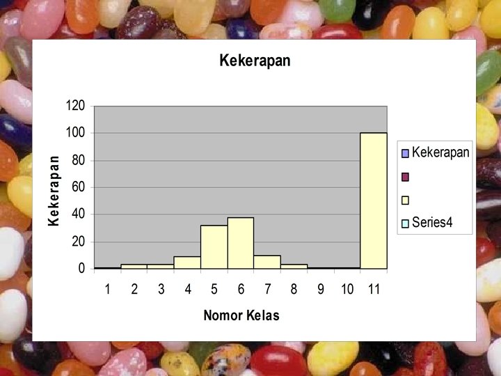 Kekerapan No kelas Batas-batas kelas Nilai tengah Kekerapan 1 3. 275 -3. 325 3. 3 3 2 3. 325 -3. 375 3. 35 3 3 3. 375 -3. 425 3. 4 9 4 3. 425 -3. 475 3. 45 32 5 3. 475 -3. 525 3. 5 38 6 3. 525 -3. 575 3. 55 10 7 3. 575 -3. 625 3. 6 3 8 3. 625 -3. 675 3. 65 1 9 3. 675 -3. 725 3. 7 1 100