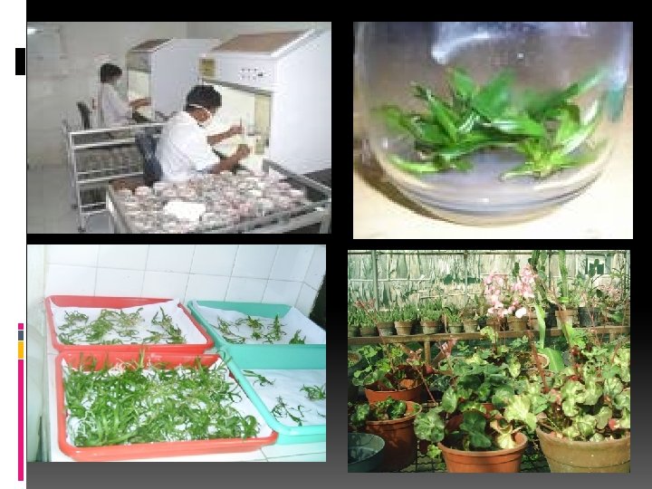 Di bidang pertanian A. Kultur Jaringan (Tissue Culture) Kultur jaringan adalah penanaman jaringan tanaman (mata tunas, daun muda atau organ lain tanaman) pada media buatan yang diatur secara aseptik dan bisa ditumbuhkan membentuk tanaman lengkap (plantlet). Satu mata tunas atau meristem atau jaringan muda dapat tumbuh lebih dari satu tanaman baru.