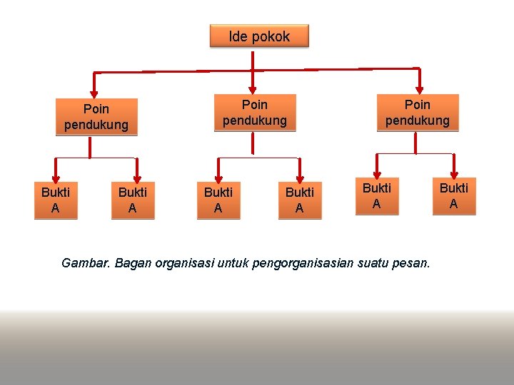Ide pokok Poin pendukung Bukti A Poin pendukung Bukti A Gambar. Bagan organisasi untuk pengorganisasian suatu pesan. Bukti A