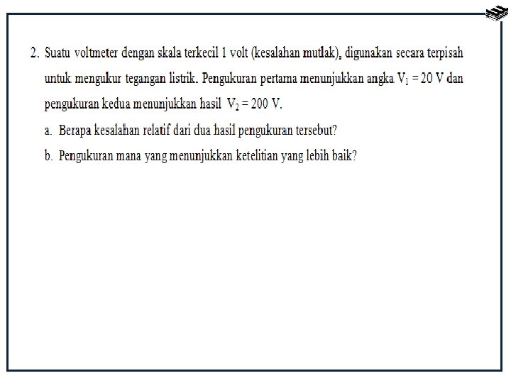 Ketidakpastian pada Hasil Percobaan Ketelitian (akurasi) adalah suatu aspek yang menyatakan tingkat pendekatan dari nilai hasil pengukuran alat ukur dengan nilai x 0. Ketidakpastian relatif Ketepatan (persisi) adalah suatu aspek pengukuran yang menyatakan kemampuan alat ukur untuk memberikan hasil pengukuran sama pada pengukuran berulang.