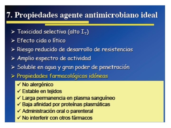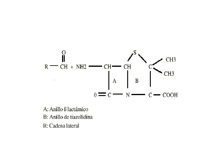 historia • • • tratamiento de heridas y otras enfermedades, tierra y vegetales que son fluentes de mohos y bacterias productores de antibióticos 1928 con el descubrimiento fortuito en el St. Mary´s Hospital de Londres por Fleming de un hongo que contaminó y destruyó varios cultivos de Staphylococcus 1938, que se logra desarrollar como agente terapéutico 1941 es posible acumular suficiente medicamento para iniciar ensayos clínicos en pacientes afectados de sepsis por Streptococcus y Staphylococcus. Desde 1942 se comienza la expansión y desarrollo del antibiótico en los Estados Unidos, se alcanzan grandes avances en su depuración y usos clínicos en estudios efectuados en la Universidad de Yale y en la Clínica Mayo, y en 1943 se habían tratado ya 200 pacientes con el nuevo producto. Hacia 1950 se logra la producción masiva del fármaco en los Estados Unidos y se llega a 150 toneladas en ese año (200 trillones de U de penicilina 50´s se crea la primera penicilina semisintética, fenoximetilpenicilina 1954 y en 1959 se introduce la meticilina, primera de la generación antiestafilocócica. Hacia finales de los años 60 comienza a usarse la carbenicilina propiedades antipseudomónicas 1984 se inicia el uso del ácido clavulánico asociado a las penicilinas, comienza la era de los inhibidores de betalactamasas.