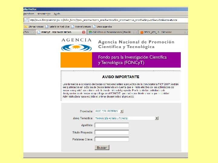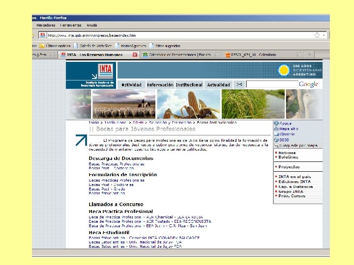 La investigación científico-técnica como carrera profesional ¿Qué organismos nacionales financian becas de posgrado? • Ministerio de Ciencia, Tecnología e Innov. Productiva * CONICET becas * ANPCy. T “la Agencia” becas en proyectos FONCy. T • Ministerio de Agricultura * INTA becas • Universidades Nacionales (Minist. Educación) *UBA ○FAUBA becas descuentos hasta 75% OTROS + vía entrada poco NB