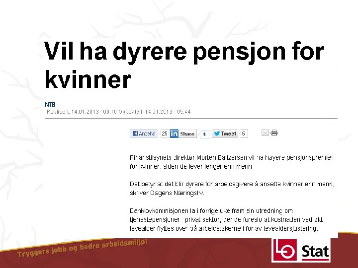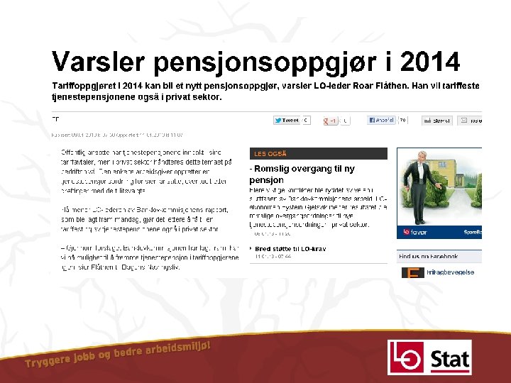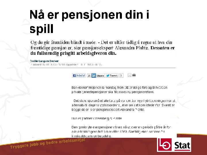 Pensjon hva skjer? Dag Westhrin Sekretær LO Stat