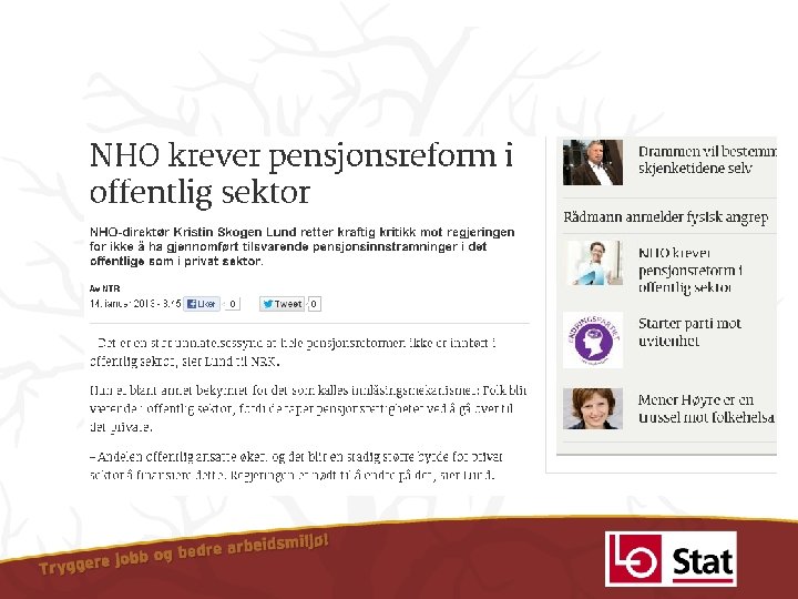 Pensjon hva skjer Dag Westhrin Sekretr LO Stat