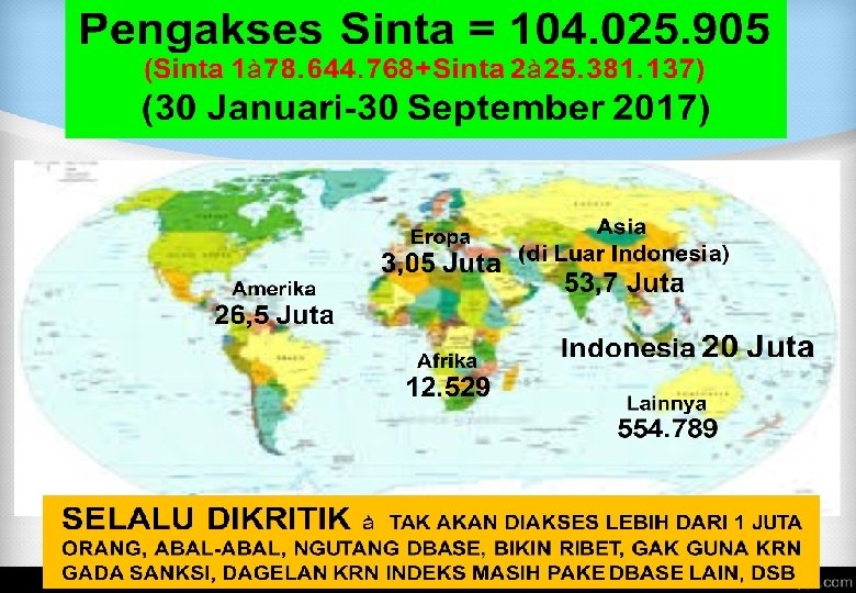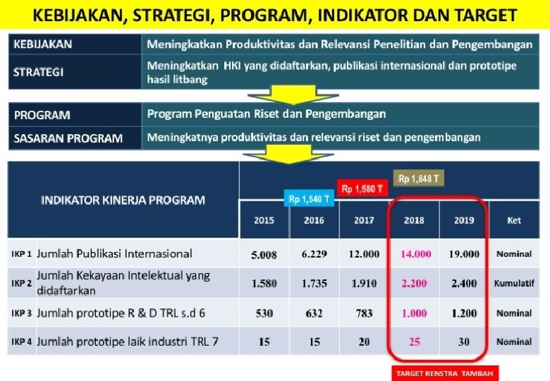 PER PERMASALAHAN YANG DIHADAPI PENELITI DI INDONESIA Anggaran Rendah MERUBAH PARADIGMA RISET Riset Berbasis Proses (Peneliti sibuk urusan SPJ, Kwitansi dll. ) RISET BERBASIS OUTPUT Tidak Ada Jaminan Keberlanjutan Anggaran Riset SDM Peneliti Sedikit MENUJU ERA EMAS PENELITIAN DI INDONESIA 2017